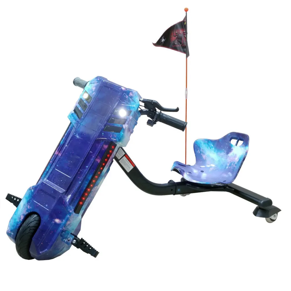 Визуально дрифтер напоминает технику будущего, привлекает внимание других участников движения. Комфорт удобство модели обтекаемым сиденьем и удобной конфигурацией. Если ваш ребенок увлекается техникой, предлагаем обратить внимание именно на этот вариант электросамоката. Приобретение тс поможет узнать, что такое экстрим, научит ответственности на дороге, покажет, что такое активный вид спорта.