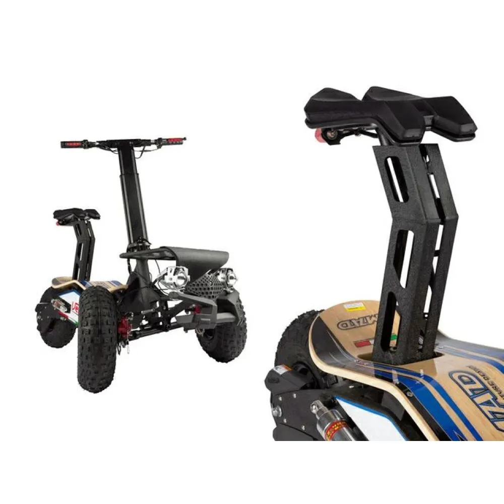 Трехколесный электросамокат Velocifero Mad Truck 1600W - необычный внешний вид и расположение трех 14 дюймовых колес привлекает внимание пользователей сразу. Модель смотрится дорого и презентабельно. Езда на электросамокате разнообразит проведение свободных вечеров и сэкономит время современного райдера в бешенном ритме жизни. Максимальная грузоподъемность 150 кг обеспечивается стальной рамой (75 кг).