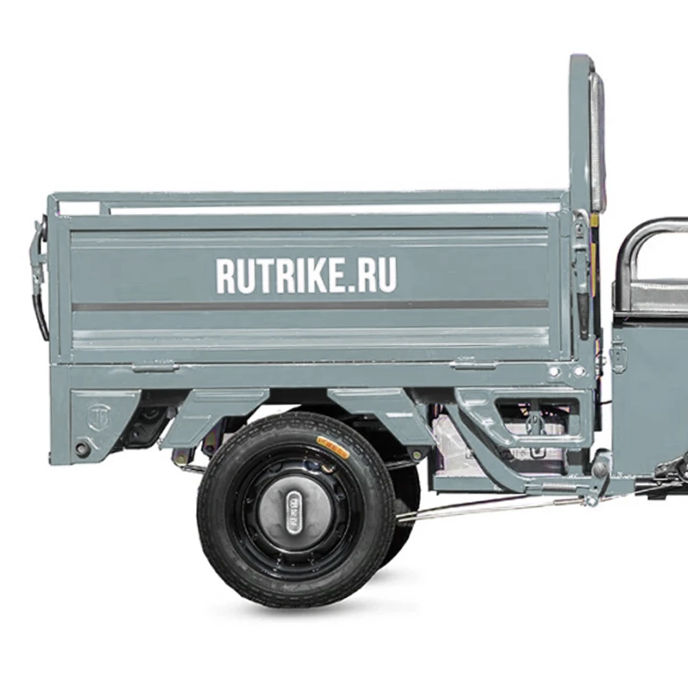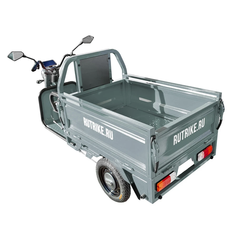 Грузовой электротрицикл Rutrike Амулет 1100 60V650W в сером цвете с мощным мотором, большим пробегом и удобным багажным отсеком является идеальным решением для тех, кто ищет надежное и эффективное средство для перевозки грузов на небольшие расстояния.