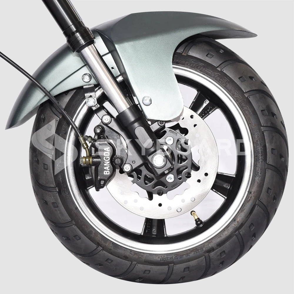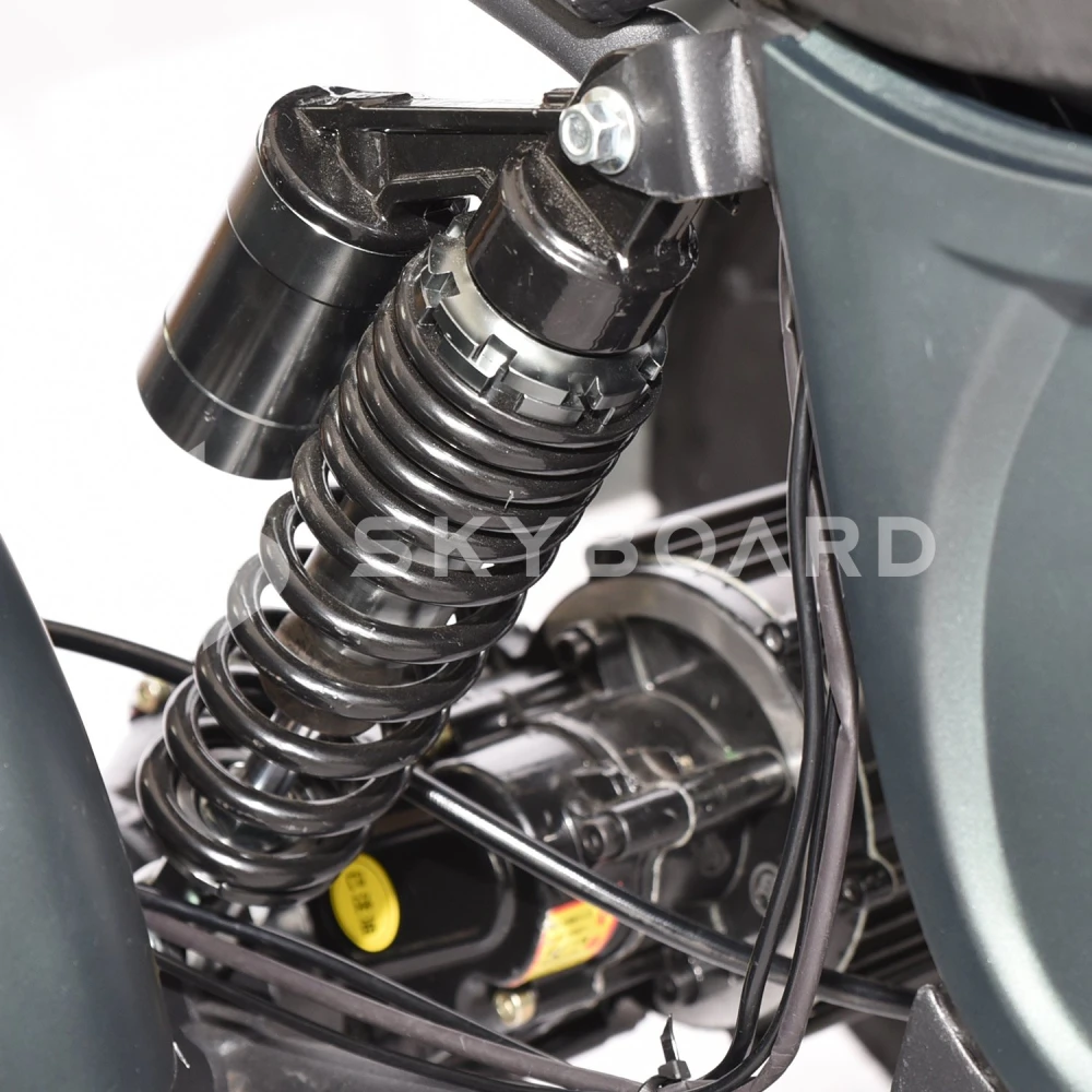 Съемный литиевый аккумулятор 20А 60V позволяет совершить непрерывные поездки дальностью от 40 км при условии движения на максимальной скорости, которая составляет 40 км/ч. Мощность электродвигателя – 2000 Вт, за счет чего происходит мгновенный набор скорости.