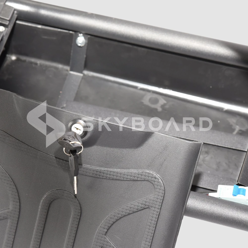 Под сиденьем электроскутера расположен специальный отсек для личных вещей. Он отлично подходит для документов, бумажника и других мелких, но необходимых вещей. Крышка вплотную прилегает к отсеку, поэтому вам не придется беспокоиться о попадании внутрь пыли или воды.