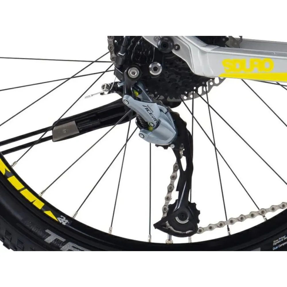 Электрический двигатель мощностью 250 Вт получает питание от литий-ионного аккумулятора емкостью 396 Втч. Задний привод кареточно-цепного типа обеспечивает быстрый набор скорости до 25 км/час при минимальных усилиях райдера. Родителям не стоит беспокоиться, аккумулятор встроен в раму и надежно защищен от соприкосновения. При этом батарея легко снимается и быстро заряжается за 3 часа от обычной розетки. Рулевая стойка оснащена передней подвеской на амортизаторах, объясняющих спортивные качества электрофэтбайка.